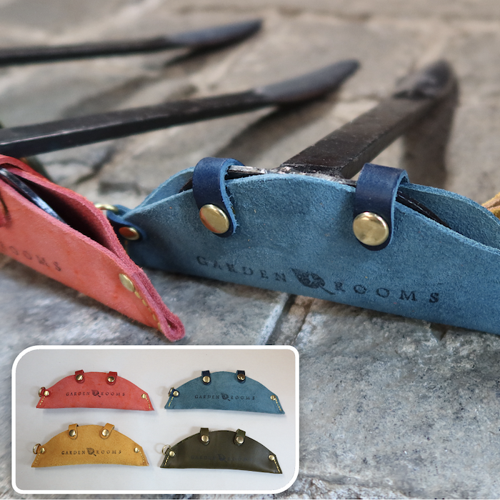丈夫な「本革」を使った腰袋。庭仕事を知っているからこその、こだわり満載のガーデンルームスオリジナル商品♪色は楽しくカラフルな8色を選びました。